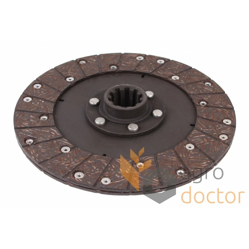 Складальний вузол, що складається з металевої пластини у вигляді диска з встановленими фрикційними накладками на поверхні та втулки з шліцами для монтажу на вал.