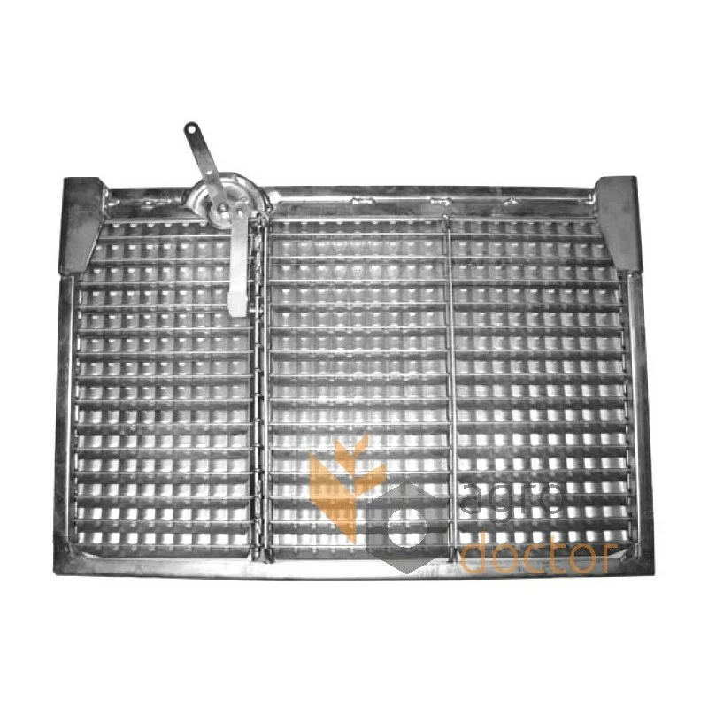 Забезпечення сепарації обмолоченої маси, тобто. відокремлення зерна від вороху, яке здійснюється за допомогою повітряного потоку, виробленого вентилятором. решета містять паралельно встановлені в рамі поворотні пластини, розташовані по обидва боки щодо осі. Поворот пластин здійснюється за допомогою системи важелів розміщених на рамі решета. Деталь виконана з п-подібного сталевого профілю.