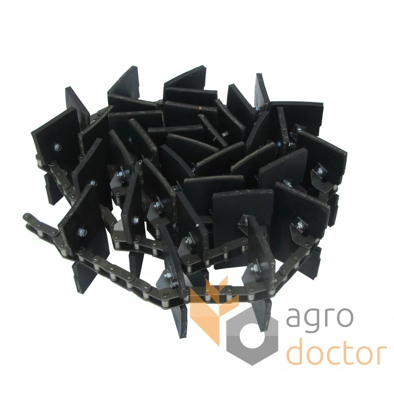 Складальна одиниця у вигляді роликового ланцюга зі спеціальними ланками, на які встановлюються прямокутні скребки виготовлені із транспортерної гуми. Під час руху елеватора відбувається підхоплення зернової маси та переміщення її в бункер.